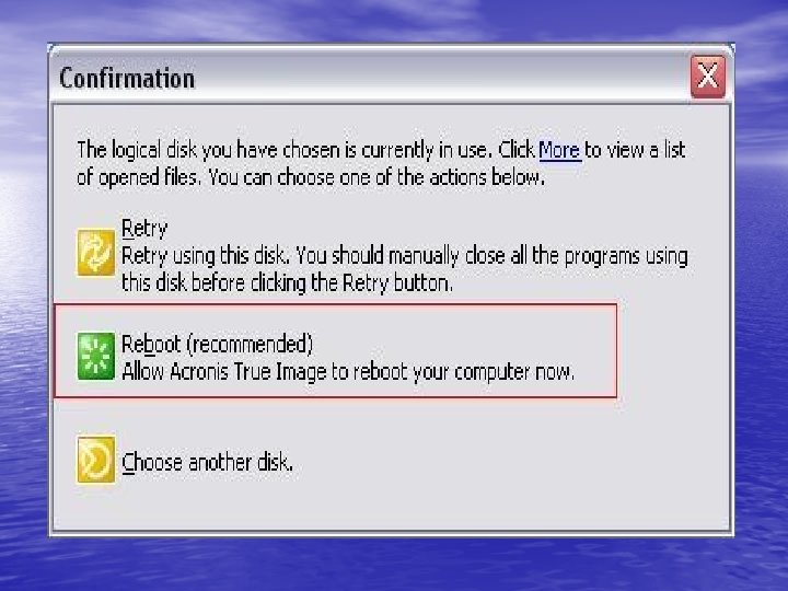 • Bir sonraki ekranda Acronis. Loading. please wait diyecektir. • Bekleyelim……. • İşlem başlayacak. • Yedeği bulacak ve yüklemeye başlayacak. • Son detayları verecek. • Ve sistem ilk günkü haline geri dönecek. • Yeniden başlatın ve tadını çıkarın. .