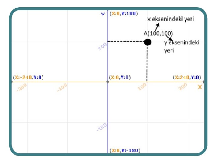 Scratch’de nesnelerin ekrandaki bulunma noktası Matematik ve Bilgisayar Bilimi çok ilişkili. Hatırlayalım Scratch programında da koordinat sistemi kullanılıyor.