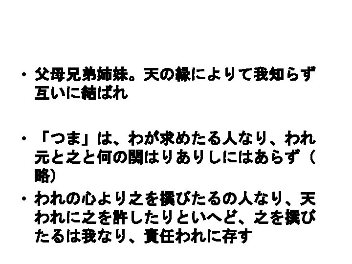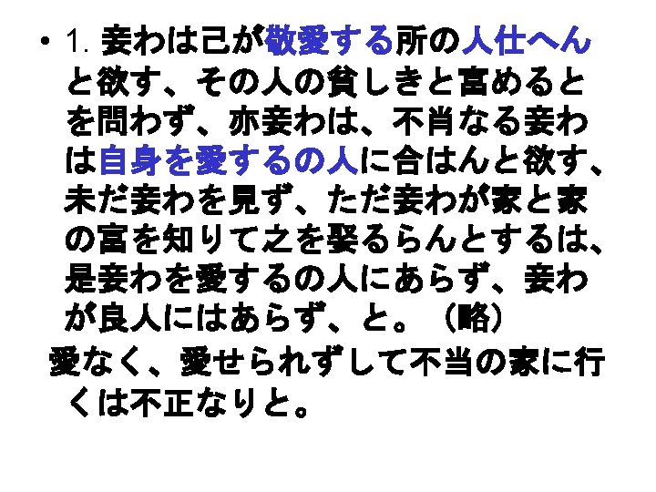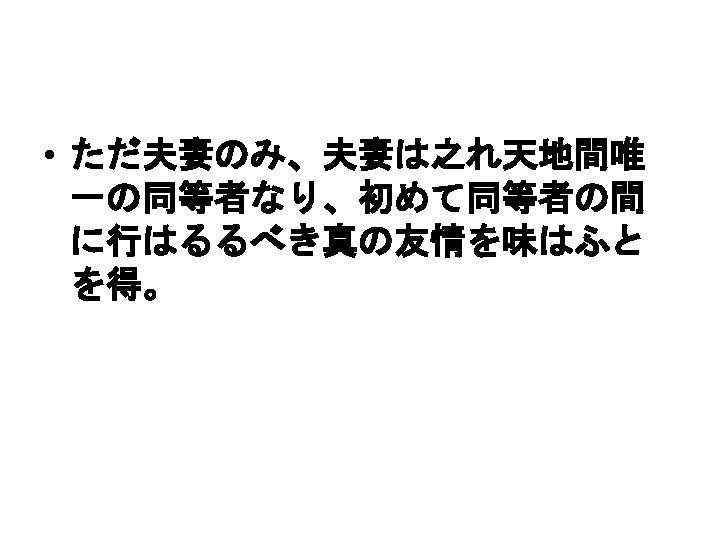 Débats sur la famille (1870 -1890) • Mori Arinori, Saishô-ron 妻妾論, Meiroku zasshi, 1874 -05 1875 -02 • 一夫一婦制 • 契約結婚 • 愛 • / « Respect des hommes, mépris pour les femmes » (danson johi 男尊女卑)