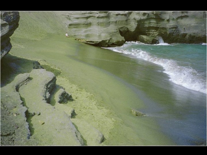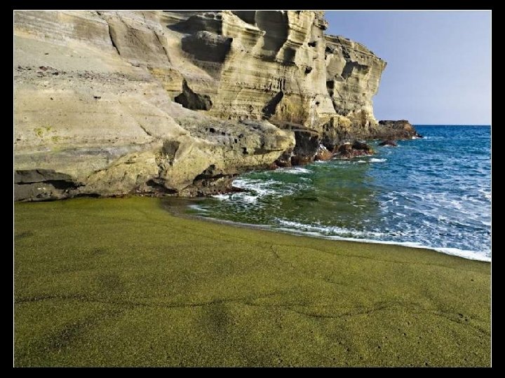 L'olivine, une composante commune de la lave d'Hawaii, est relativement abondante sur la plage Papakolea Beach, c'est pourquoi, en particulier sur le rivage, la plage a une teinte particulière de vert.