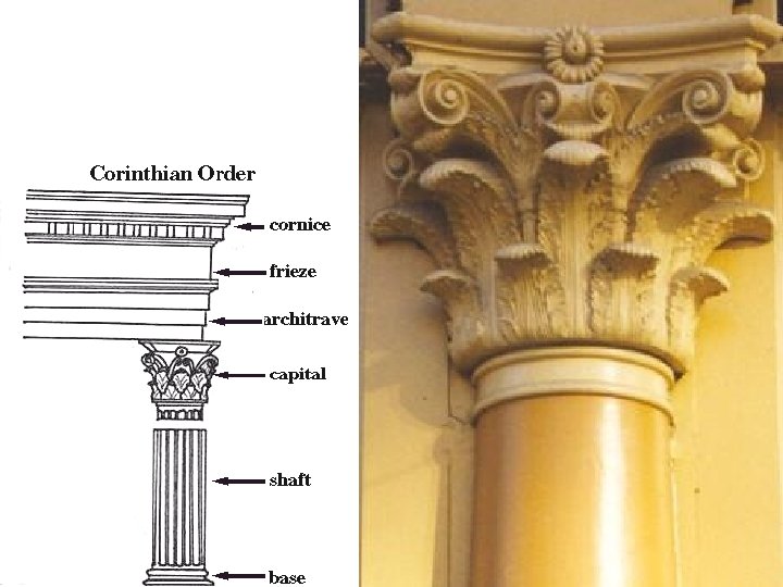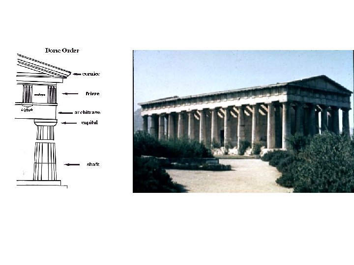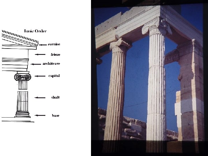 Mulai dikenal 3 macam “order”, (bentuk tiang yang mengacu pada aturan tertentu) yaitu 1. DORIC dengan ciri kepala kolom yang masih sederhana dan sedikit sekali menampilkan hiasan 2. IONIC, menampilkan kepala kolom sudah menampilkan corak hiasan. 3. CORINTHIAN, dengan pola hiasa yang lebih banyak