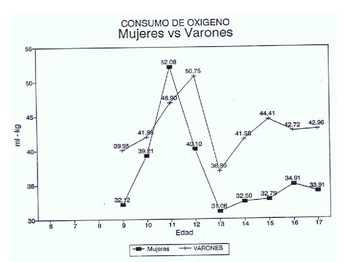 Cambios en los valores absolutos del VO 2 max en relación con la edad del PMC y el grado de participación en actividades físicas Varones Atletas élite Entrenados VO 2 Max Promedio (Kobayashi y col, 1978). Sedentarios PMC aňos El VO 2 max, medido en valores absolutos (l. O 2/ min), comienza a aumentar levemente alrededor de 4 años antes del PHV, y continua aumentando durante el “estirón” puberal