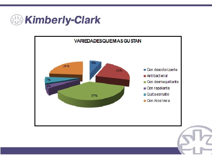 Descripción de la empresa • En 1995, se establece en Ecuador. • En la actualidad, es fabricante de marcas conocidas a nivel mundial: Kotex, Kleenex, Huggies; Scott, Pull-Ups, Cotonelle, entre otras. • Sus productos se venden en más de 150 países. • Cuenta con 37 plantas de producción