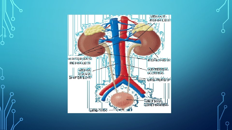 • • El Aparato Urinario • Después de almacenarse en la vejiga la orina pasa por un conducto denominado uretra hasta el exterior del organismo. La salida de la orina se produce por la relajación involuntaria de un músculo: el esfínter vesical que se localiza entre la vejiga y la uretra, y también por la apertura voluntaria de un esfínter en la uretra. • No hay más que una diferencia entre el Aparato Urinario femenino y masculino: la uretra masculina es algo más larga y es, al mismo tiempo, una vía urinaria y una vía genital. En cambio, la uretra femenina es un conducto exclusivamente urinario, siendo independiente de los conductos genitales. Es el conjunto de órganos que producen y excretan orina, el principal líquido de desecho del organismo. Esta pasa por los uréteres hasta la vejiga, donde se almacena hasta la micción (orinar).