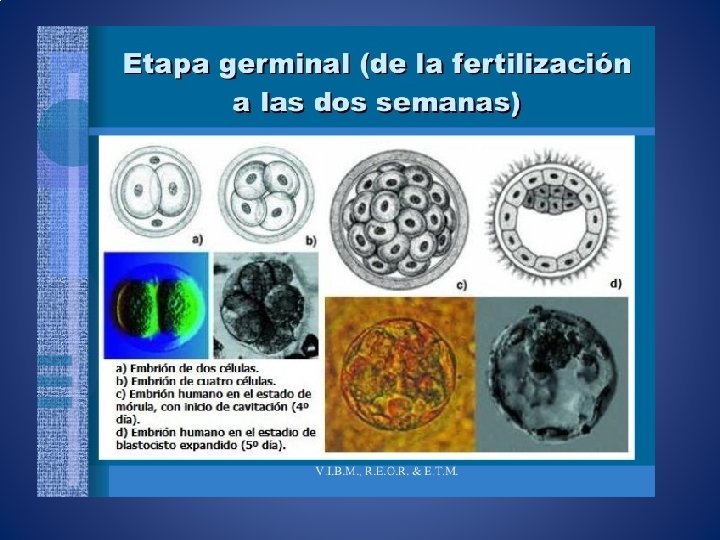 A. PERIODO GERMINAL • Cigoto (mitosis) • Blastocito: se divide en dos grupo ü Placenta y soporto exterior ü Embrión (interior) Disco embrionario