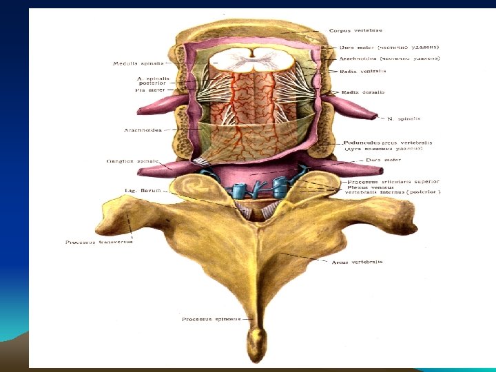 Spinal cord organization White matters (nerve fibres) lateral dorsal Sensory inflow Dorsal horn medial Ventral horn Grey matters (cell bodies) ventral Motor commands