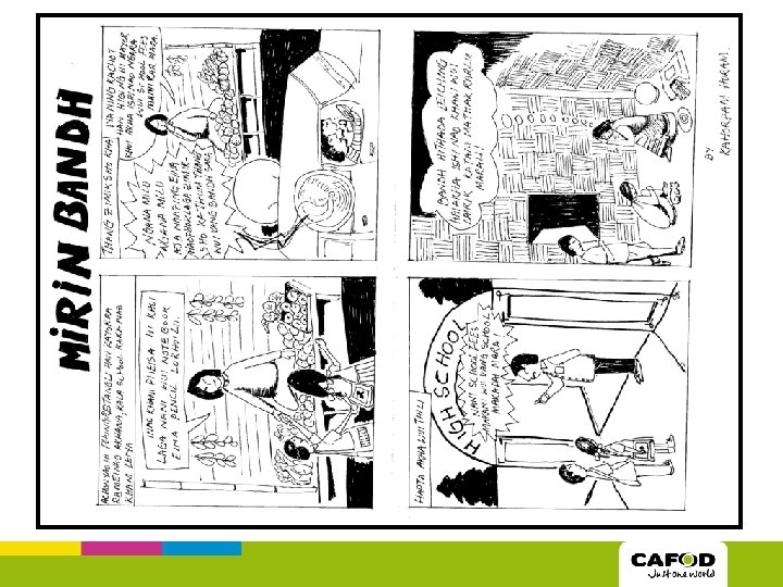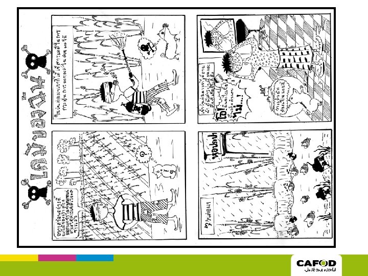 Input World Comics • A way to campaign. • Used by CAFOD partners in Sri Lanka. • Look at a comic, what message is the artist trying to get across? • What are the benefits of putting your message across through a comic? • What are the drawbacks?