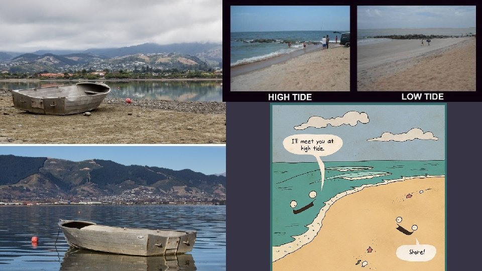 Spring Tides** Sun, Earth, and Moon are aligned **on average 3 x higher than Neap tides. Neap Tides Sun and Moon are perpendicular