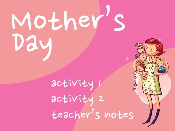 Slide 3 Refer students to the slide. Provide each student with a sheet of paper and some colored pencils or crayons. Tell students they will draw their mother. Collect all the drawings and glue them to the wall. Have students go around the room and guess whose mother is on each drawing. After some time collect the drawings back and elicit from the group whose mother is in your hands. Give a point to the students who answers correctly.