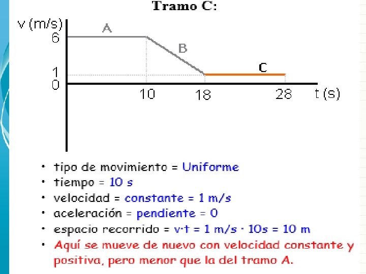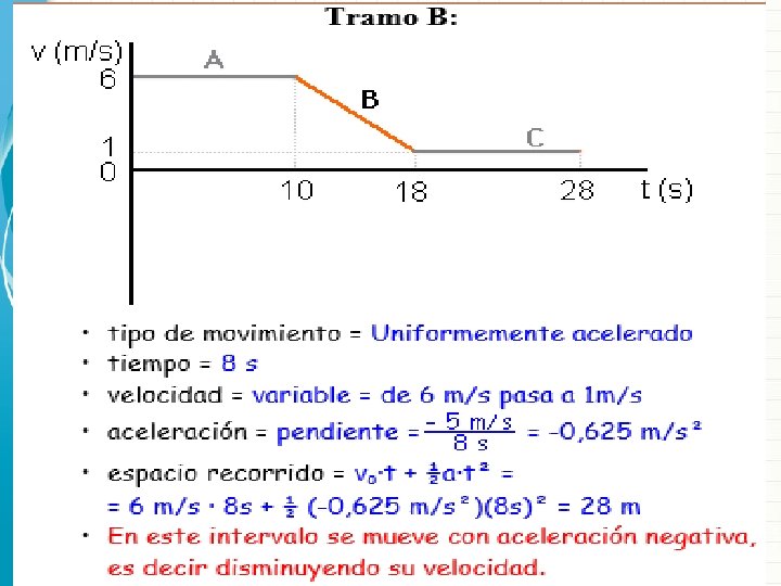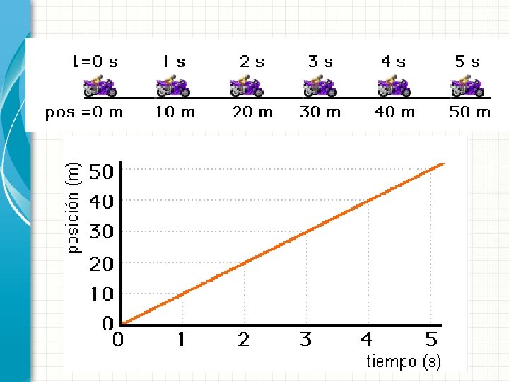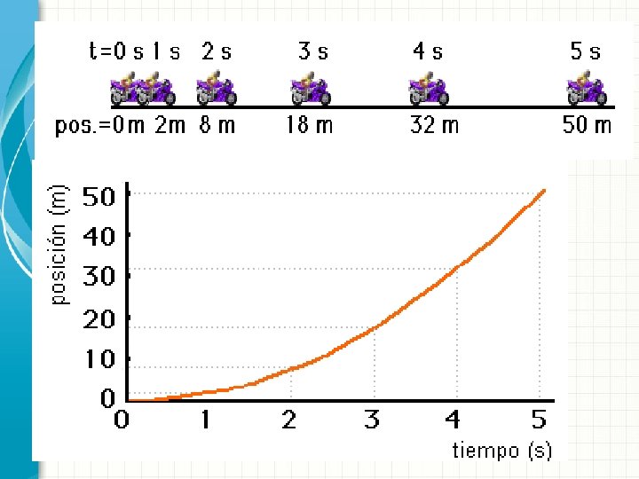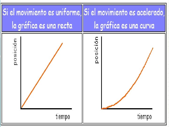 Posición vs. tiempo v t Nota: la pendiente de una función lineal es una aceleración (-), su sentido es contrario a la velocidad.