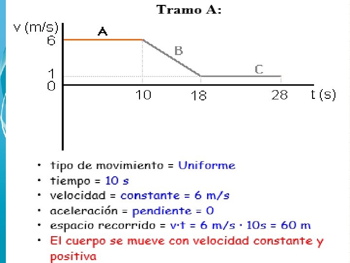 Velocidad vs. tiempo v a=0 t Nota: la pendiente de una función lineal horizontal es cero, la velocidad constante.