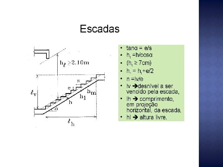 � Escadas �Piso: 25 a 30 �Espelho: 15 a 20 �Largura: variável