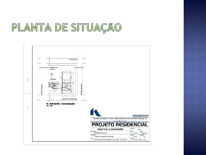 Parte de um projeto; � Posição do lote em relação aos confrontantes Construção e limites do lote; � Escala mínima: 1: 500; � Indicar norte geográfico. �