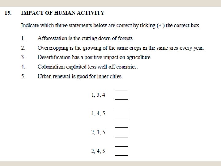 Solutions to Desertification • Plant grasses and trees to bind the sand together. • Restrict the number of livestock and introduce new breeds. • Create irrigation schemes to increase water supply and make more land for grazing. Dig Deeper wells. • Educate farmers and families in modern farming techniques