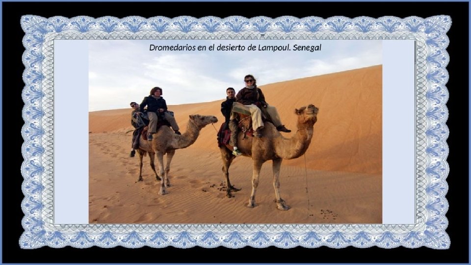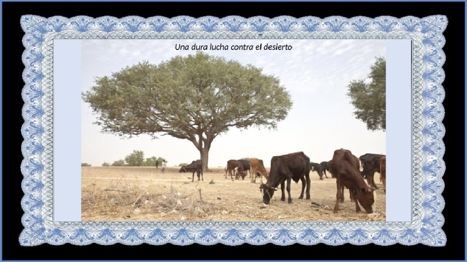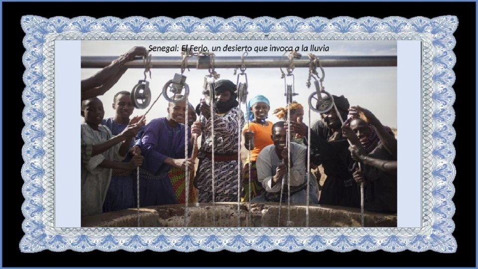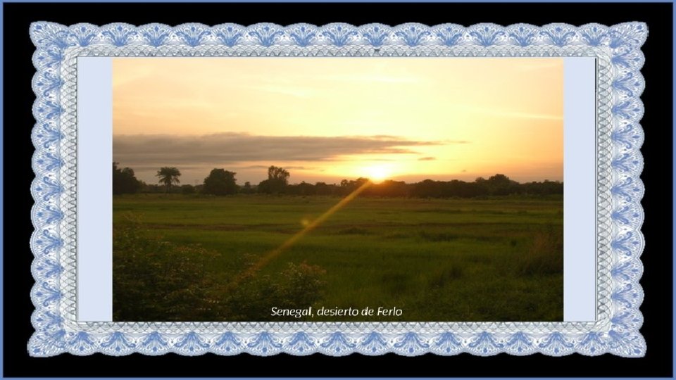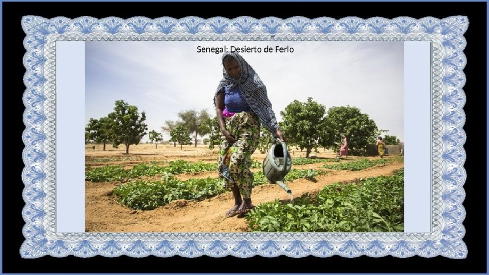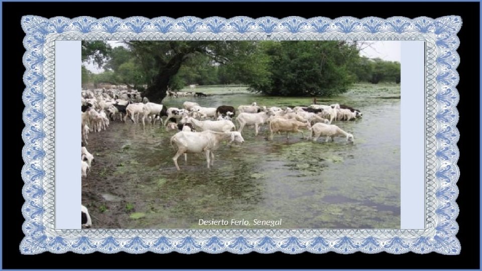 Desierto de Ferlo Es un desierto en el África occidental parte de la república de Senegal. Esta al sur de la cuenca del Senegal, está situado en la zona norte del país y forma parte del Sahel. Con escasa vegetación no es inferior a un tercio de la superficie total de Senegal. El área toma su nombre del río del mismo, Ferlo. Tiene un terreno arenoso plano, con pequeñas zonas arcillosas. La Reserva es atravesa por varios ríos intermitentes, incluyendo al Ferlo. En la estación de lluvias, las pequeñas lagunas y estanques que se forman permiten grandes concentraciones de animales. Dicen, los que la conocieron, que el Ferlo era una tierra verde y fértil hace más de 50 años. Hoy es una de las zonas más afectadas por la desertificación y el cambio climático. En 2007 el Gobierno de Senegal crea la Agencia Nacional de Gran Muralla Verde para desarrollar un plan de acción que contribuya a detener el avance del desierto y asistir a la población más afectada. El Ferlo, muy castigado por la falta de lluvia durante décadas, acoge con esperanza el proyecto que quiere recuperar el sistema socio ecológico perdido, un vergel que se transformó en desierto.
