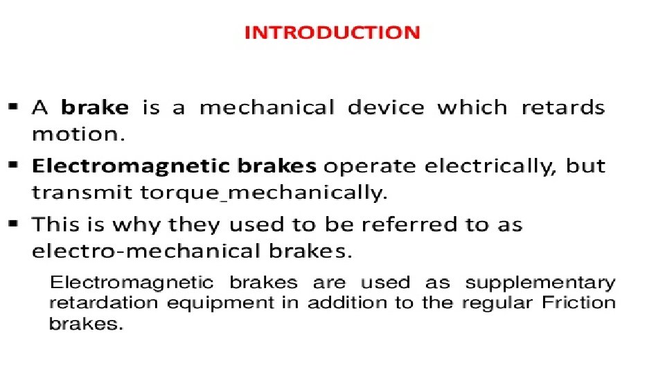DISADVANTAGES ØFailure to act as a holding device ØUsage of electric power for braking ØLess effective under very low velocities