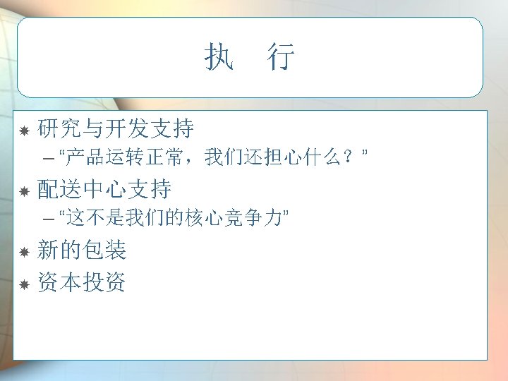 Implementation R&D Support – “The product is working, so why bother? ” DC Support – “Not our core competency” New packaging Capital investment