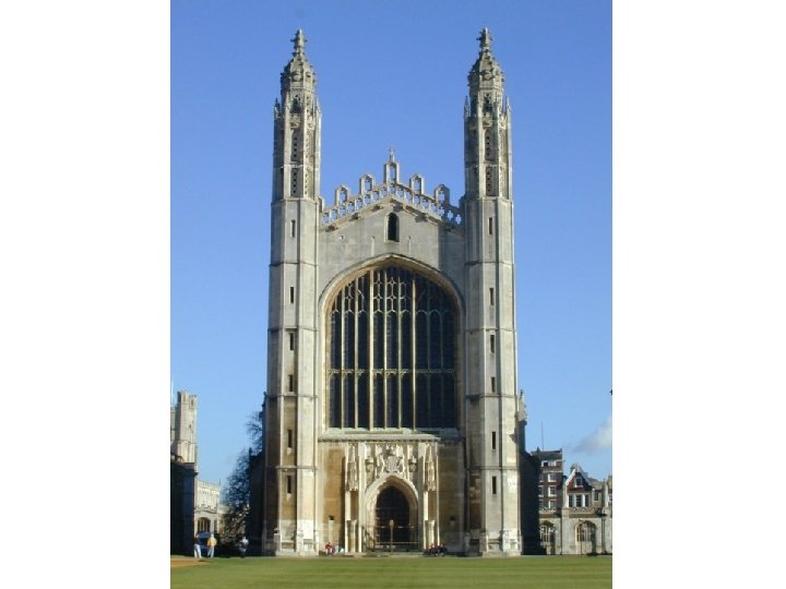 King’s College Chapel • an image of the magnificent fan-vaulting on the ceiling of King's College Chapel (completed in 1515), which spans 42 feet and hovers 84 feet above the pavement, yet its constituent blocks are only four inches thick. • It's been standing for 500 years. "