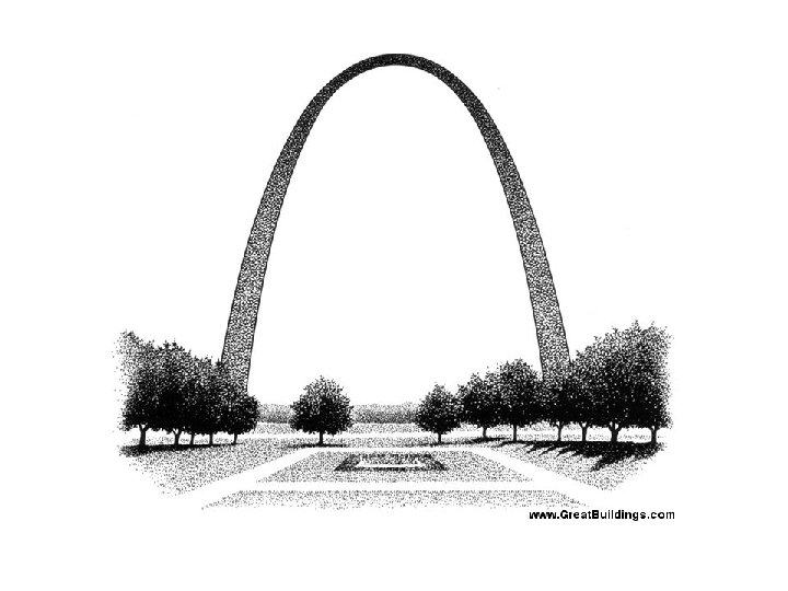 Gateway Arch The stainless steel-plated arch is in the shape of an inverted, weighted catenary curve. It spans 630 feet at ground level from outer edge to outer edge and is 630 feet high, making it the tallest man-made monument in the US. Designed by Eero Saarinen