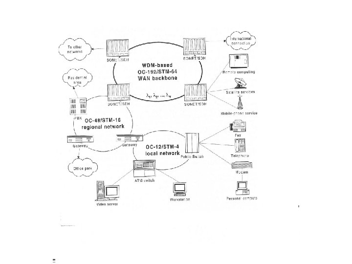 The Evolution of Fiber Optic Systems • With the advent of WDM, it was realized that DS fibers were not suitable for long haul transmission because of four wave mixing among different channels of WDM. So, standard fiber (D=17 ps/nm. km) or Non-zero dispersion shifted fiber (NZDSF) are used in current commercial systems. Relatively large dispersion of these fibers is compensated by means of dispersion compensating fibers. • Large local dispersion helps to minimize four wave mixing penalty in WDM systems.