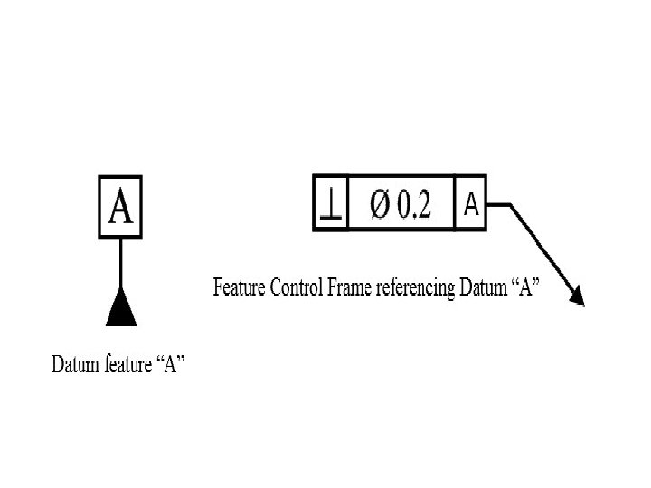 How Datum Features are Shown on a Drawing • The datum features on a drawing are denoted with a series of capital letters. These letters are in boxes and tied to the datum feature with a black triangle. This letter will also show up in any feature control frame that uses this datum feature as a reference. A feature control frame can reference multiple datums at once and each one can be referenced as many times as needed.