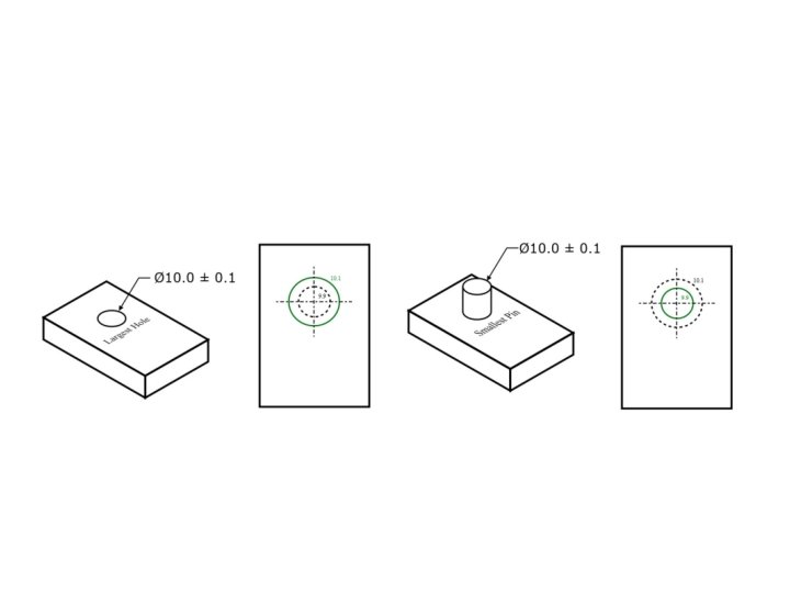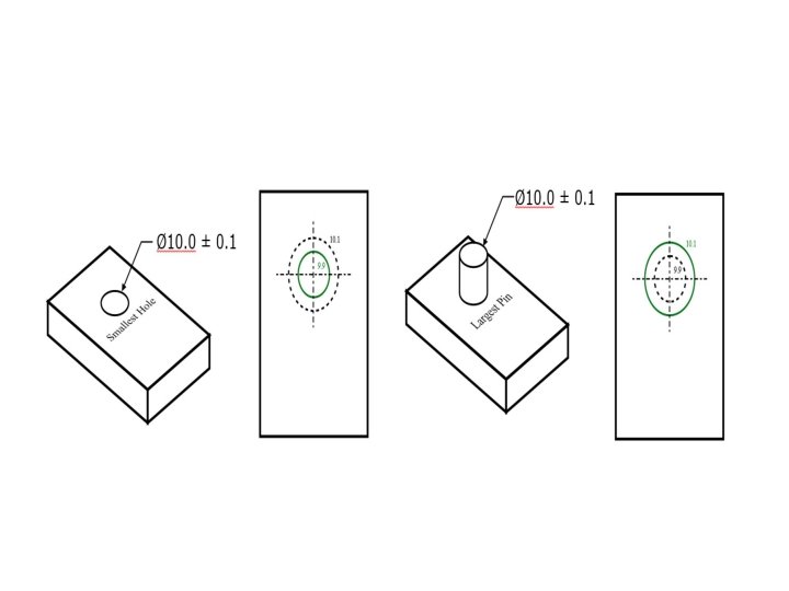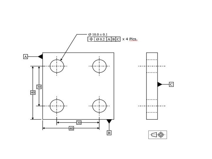 True Position • True Position: • Symbol: • Relative to Datum: Yes • MMC or LMC applicable: Yes (common)