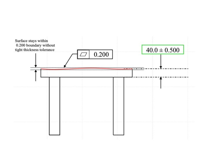 Flatness • • Symbol: Relative to Datum: No MMC or LMC applicable: Yes – New in 2009 Drawing Callout