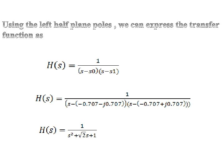Example 13 -1: Solution: for order 2 the numbers of poles of H(s)H(-s) is given by k where k=0, 1, …. 2 n-1 ; there are 4 poles
