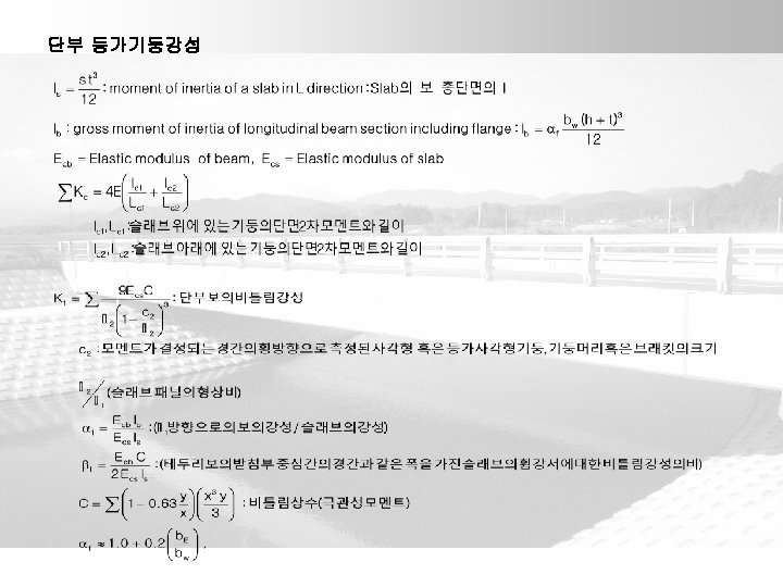 단부 등가기둥강성 0. 65 a 3 = 0 0. 35 M 0 0. 65 M 0 a 2 = 0. 63 a 1 = 0. 75 Column stiffness Slab stiffness Beam stiffness 0. 65 0. 35 0. 65
