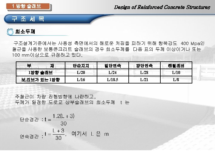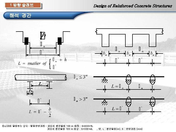 1 방향 슬래브 Design of Reinforced Concrete Structures 설 계 t b=100 cm Typical imaginary strip 1 m wide L b=100 cm t L