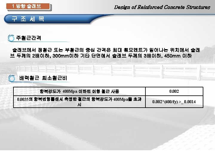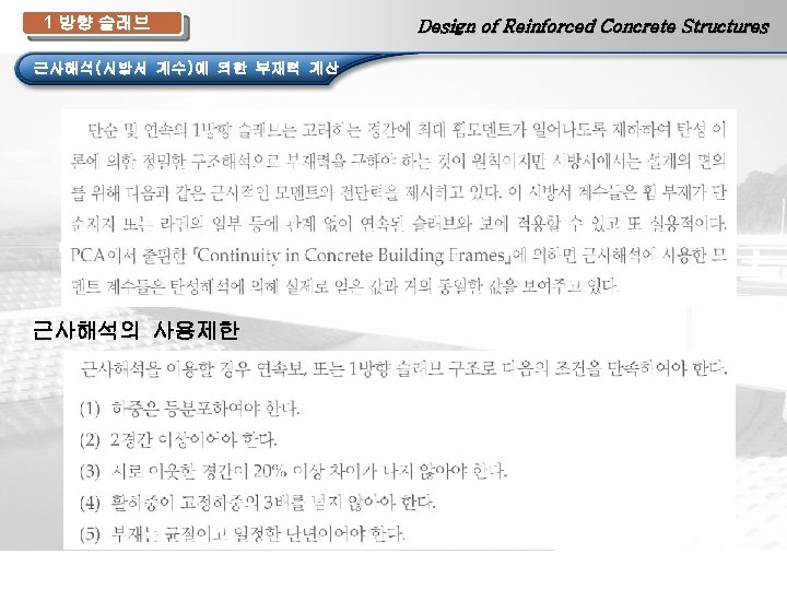 Design of Reinforced Concrete Structures 슬래브 1 1 방향 슬래브 2 2 방향 슬래브
