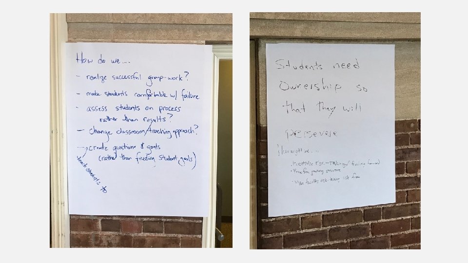“HOW MIGHT WE…? ” How: Assumes solutions exist and provides the creative confidence to address unmet needs. Might: Suggests we can put ideas out there which might or might not work, as a way to seek understanding. We: Implies the highly collaborative nature of the process. *** How might we design a learning space that directs our current teaching styles to pedagogical approaches that foster creative confidence, skillful collaboration, and contextual thinking?