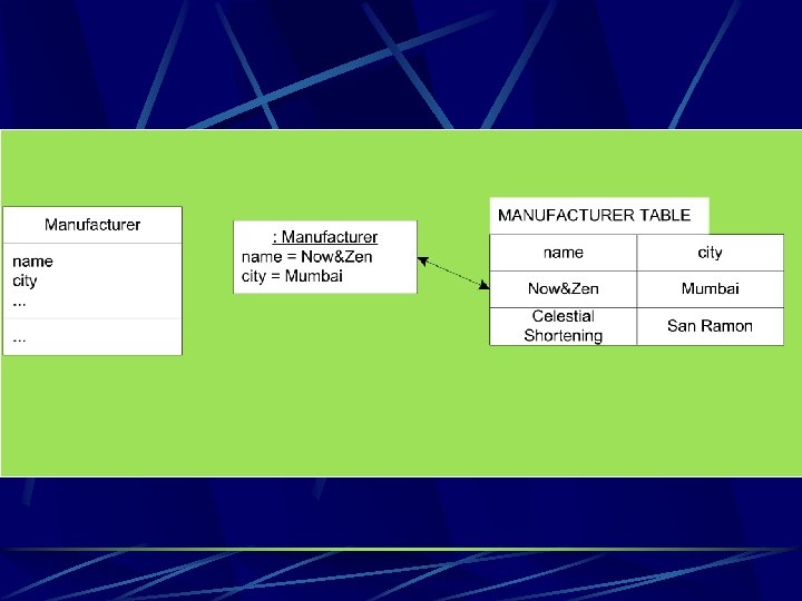 The Representing Objects as Tables pattern How do you map an object to a record or relational database schema? The Representing Objects as Tables pattern