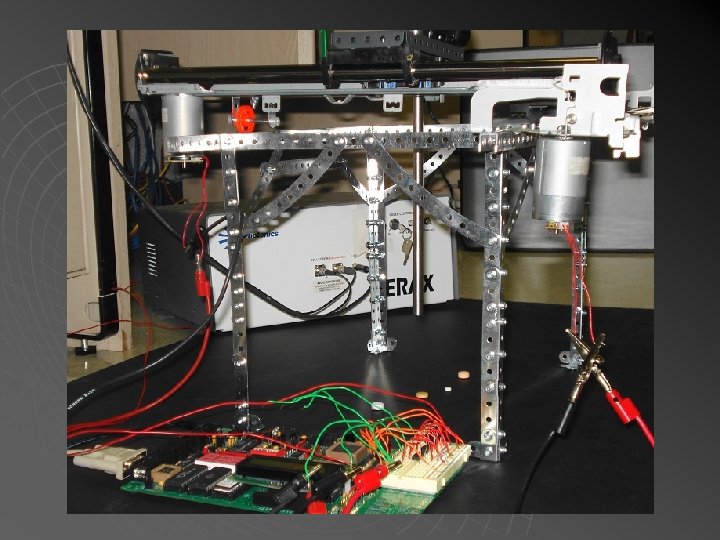 Main Components u u u u Erector sets Raman probe 68 HC 11 microcontroller Breadboard/circuitry Cameras DC step motors Printer railways