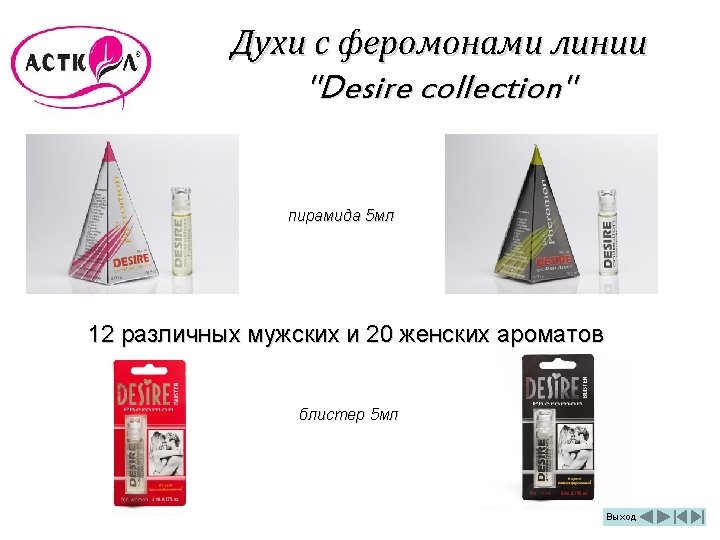 Новый дизайн женских духов с феромонами линии "Desire" 5 мл Духи «Desire » Garden «Desire» c ароматами “Gucci Rush II” “Armand Basi In red” и “Escada Rock in Rio” Духи «Desire » Secret «Desire» c ароматами “Amour” “Coco Mademoiselle” и “Enclade de Arpege” Духи «Desire » Fresh «Desire» c ароматами “D&G Light Blue” “Escada Magnetism” и “Boss Intense” Духи «Desire » Nature «Desire» c ароматами “Hugo Boss” “Lacoste Touch of pink” и “C. Herrera 212 SEXY” Выход
