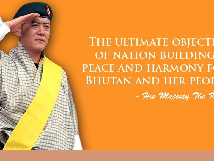 His Majesty The Druk Gyalpo • There is a higher responsibility - not written in any legal document but instead enshrined in humanity and history - a natural responsibility and duty that we all must shoulder equally, irrespective of who we are. Of paramount importance to the strength of a nation, is the ability of her people to live as one united family - a community in which interaction is marked by trust, understanding and cooperation