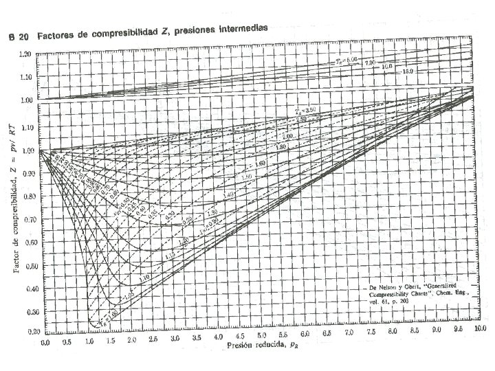 FACTOR DE COMPRESIBILIDAD Obsérvese que para un gas ideal, Z=1, y la desviación de z respecto a la unidad es una medida de la desviación de la relación real con respecto a la ecuación de estado del gas ideal. La fig. 3. 7 (termo Sontang y Van pag. 73) muestra un diagrama de compresibilidad del nitrógeno. En relación a este diagrama haremos algunas observaciones. La primera es que a todas las temperaturas, Z 1 a medida que P 0. se acerca a lo predicho por la ecuación de estado. Observe también que a temperaturas de 300 K y