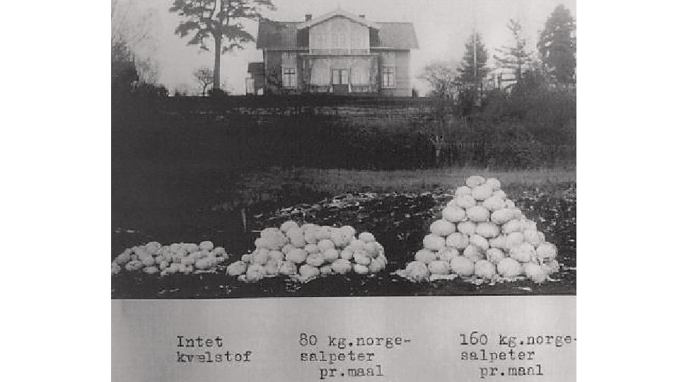 De fikk lage kunstgjødsel. Bonden var fornøyd, for han hadde aldri før fått så mye fine poteter – kål og mye annet fra åkeren. Norgesalpeter