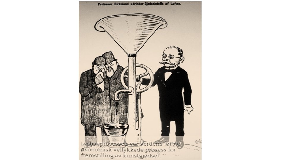 Den smarte mannen, det var Kristian Birkeland. Han forstod hvordan du kan lage gjødsel til bonden. Han brukte luft og vann, magnet og strøm som laget mye varme!