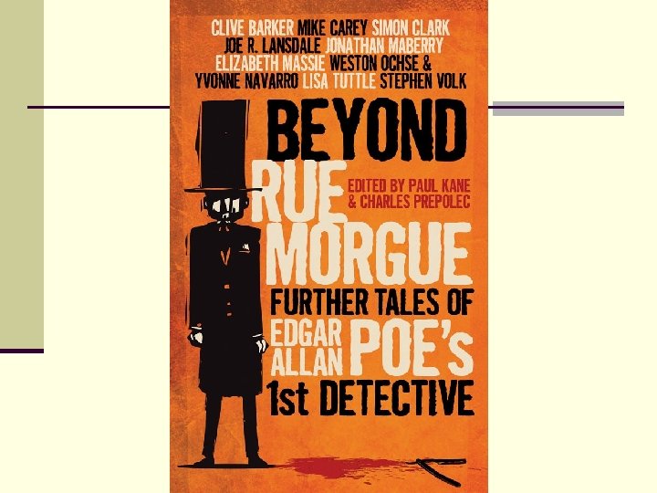His detective, C. Aguste Dupin, and the un-named narrator form the template for many other detectives n such as: Miss Marple n Hercule Poirot. n n Agatha Christie