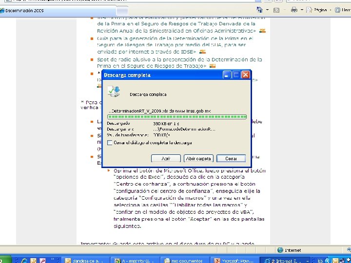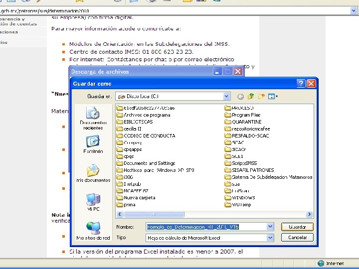 DETERMINACION PATRONAL SE DEBERA PRESENTAR AL INSTITUTO, DURANTE EL MES DE FEBRERO, EN LOS FORMATOS IMPRESOS AUTORIZADOS POR EL INSTITUTO, O PODRA GENERARLA MEDIANTE EL SUA Y TRANSMITIRLA VIA INTERNET A TRAVES DE IDSE ( IMSS DESDE SU EMPRESA ) EN DICHA DETERMINACION DEBERA PRECISAR LOS RIESGOS DE TRABAJO QUE HUBIEREN OCURRIDO EN LA EMPRESA DURANTE EL AÑO DE REVISION.