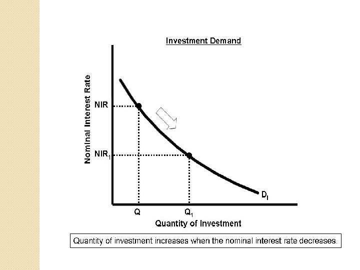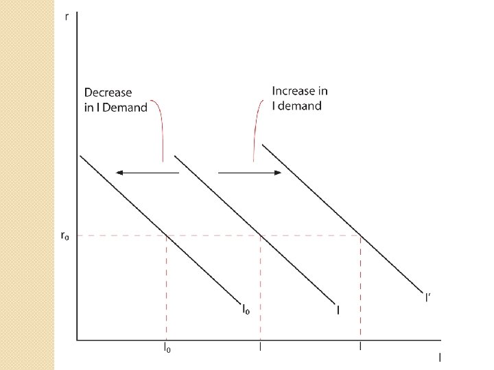 Pergeseran Kurva Permintaan Investasi Selain tingkat suku bunga, besar kecilnya tingkat investasi juga dipengaruhi berbagai hal lain. Jika hal-hal tersebut berengaruh terhadap Investasi maka bisa menggeser kurva permintaan investasi ke dalam (investasi berkurang) atau keluar (investasi bertambah).
