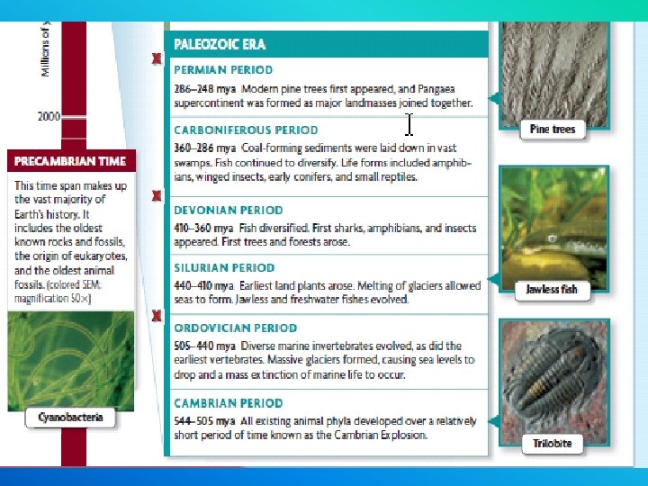 • Before photosynthesis evolved, the first prokaryotes would have anaerobic, living without oxygen. • Scientists have found evidence that photosynthetic life evolved more than 3. 5 billion years ago. • These fossils are of Cyanobacteria, which are bacteria that could carry out photosynthesis and release oxygen. • Some cyanobacteria live in colonies. • Higher oxygen levels in the atmosphere and ocean allowed the evolution of aerobic prokaryotes, which need oxygen to live. Microbes