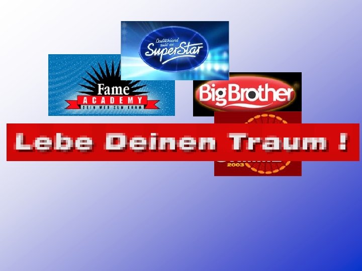Viele machen mit, aber warum? Neugier? Reichtum? Berühmtsein? Lächerlichkeit Objekt eines Senders Keine Chance Die Hoffnung Die Realität