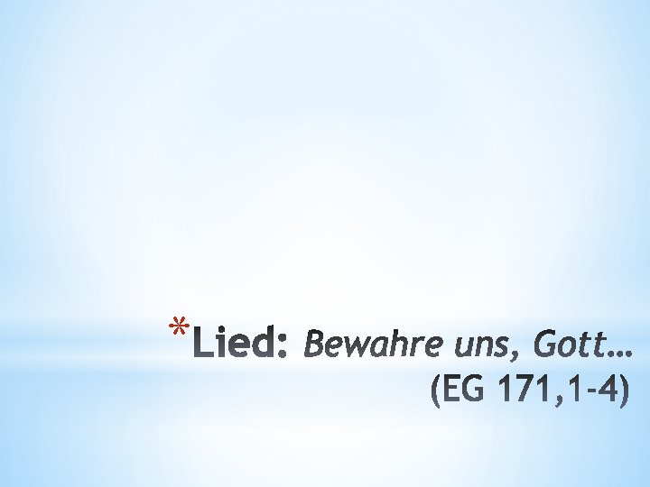 Vater unser im Himmel. Geheiligt werde dein Name. Dein Reich komme. Dein Wille geschehe, wie im Himmel, so auf Erden. Unser tägliches Brot gib uns heute. Und vergib unsere Schuld, wie auch wir vergeben unsern Schuldigern. Und führe uns nicht in Versuchung, sondern erlöse uns von dem Bösen. Denn dein ist das Reich und die Kraft und die Herrlichkeit in Ewigkeit. Amen. *