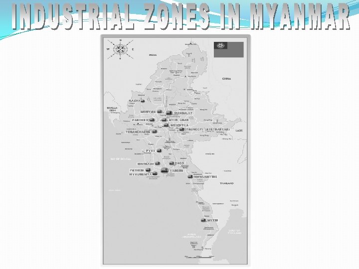 Industrial Analysis in Myanmar Mandalay Division - Industrial Zone (1) Industrial Zone (2) Myin Chan Industrial Zone Meikhtila Industrial Zone Ayarwaddy Division – Pathein Industrial Zone Myaung Mya Industrial Zone Hinthada Industrial Zone Sagaing Division - Monywa Industrial Zone Tanintharyi Division – Myeik Industrial Zone Magwe Division - Yenangyaung Industrial Zone Pakokku Industrial Zone Shan State - Aye Thar Yar Industrial Zone (Taunggyi)