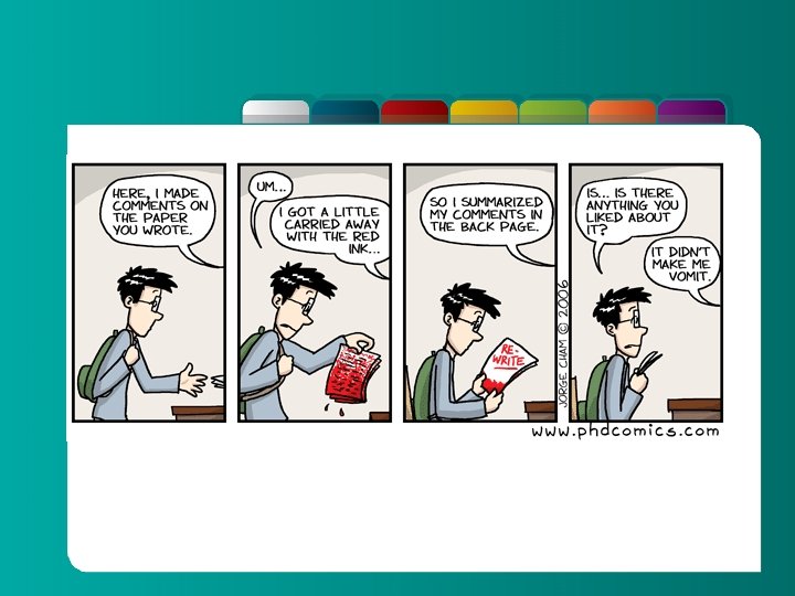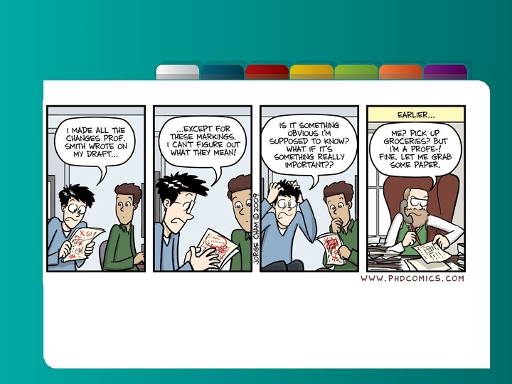 Respond to the person • Use the student’s name in your comments. • Be specific and detailed. Comments such as “This makes no sense” or “What does this mean? ” are not helpful. • Avoid taking over student’s writing - use ‘comments’ rather than simply correcting text. • Use ‘Track changes’ to monitor the extent to which you’re doing the writing for the student.