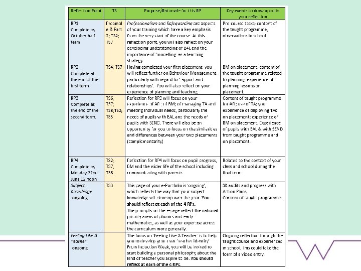 Reflection points RP 1 – by the end of the October half term RP 2 – By the end of Christmas holidays RP 3 – By the end of the Easter holidays RP 4 – 22 nd June 2019