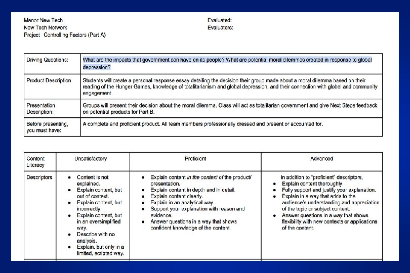 Task #3: Develop rubrics for all Product and Process criteria (standards). 1. Can we develop compliance and/or learning rubrics for the Product criteria (standard strands) for each course? 2. Can we develop compliance and/or learning rubrics for the Process criteria (standards) for each course? 3. Can we explain our rubrics to students? To parents? To other teachers?