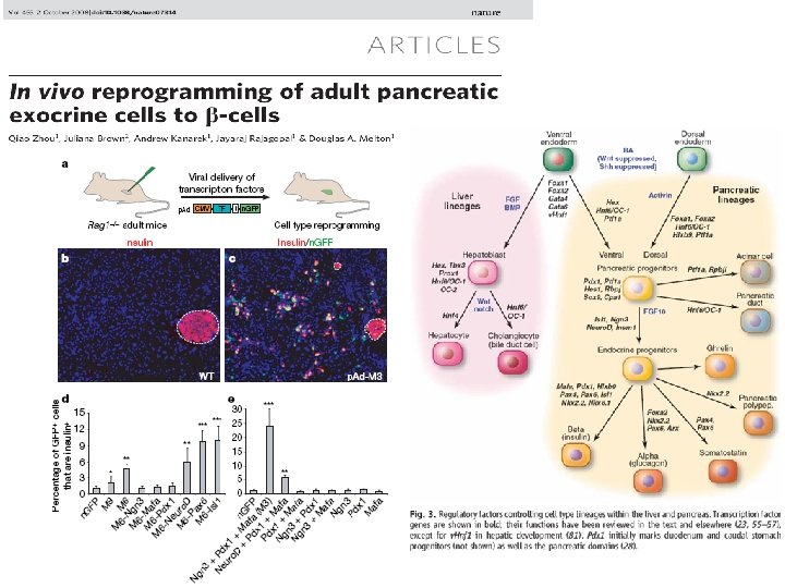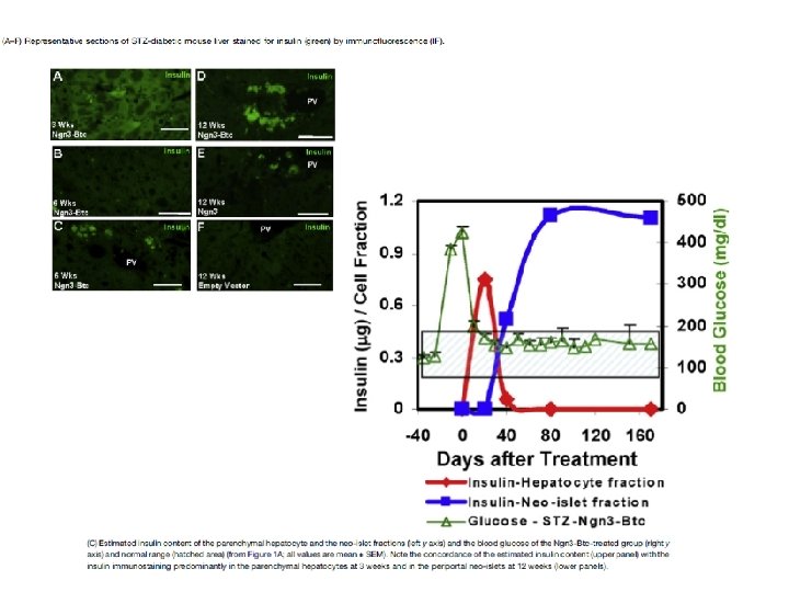 Fyziologická tvorba inzulinu - β(B) buňky produkce inzulinu –β buňky lokalizované v Langerhansových ostrůvcích pankreatu hlodavci – organizace b. v ostrůvku - krev protéká v pořadí β b. - α b. - δ b. , dochází u nich k replikaci β b. v adultním org. - u člověka ne ostrůvky - 100 000 - 2, 5 mil. na pankreas, 50 -300 um - každý ostrůvek několik tisíc b. různé typy b. - β buněk 70%, glukagon sekretující α b. , somatostatin sekretující δ b. a PP (pankreatický polypeptid) sekretující b. Recent progress on normal and malignant pancreatic stem/progenitor cell research: therapeutic implications for the treatment of type 1 or 2 diabetes mellitus and aggressive pancreati ccancer. M Mimeault and S K Batra Gut 2008; 57; 1456 -1468